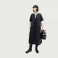 年間通して一枚で上品スタイル 上質ポンチ カフタンワンピース 黒 ●CORALIE-KAFOP●