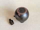 この作品は、信楽の土を使いろくろで作った注器を丁寧に削り独自に調合した釉薬をかけ完成させています。中は丸穴で内側にも釉薬をかけています。手になじむ丸みを帯びた形で、注ぎやすく水切れが抜群です。蓋もすり合わせが良くぴったりです。この注器の蓋合わせは難しく、作品として出せるものが少ない貴重な注器です。