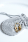 キャッチは、ホールド力もしっかりしているK10のシリコンキャッチをおつけし、持ち運びの時にもお使いいただける、ジュエリーポーチに入れてのお届けとなります。