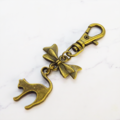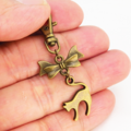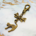 アンティークゴールド 跳ね猫とリボンの大人可愛いファスナーチャーム キーホルダー マスクチャーム 金具交換可