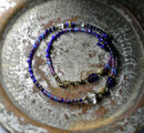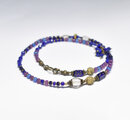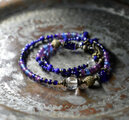 瑠璃色ダイスビーズとクリアビーズ、つぶつぶブラス、瑠璃色&すみれ色ビーズ、ラピスを繋いだネックレスです。