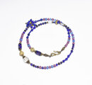 瑠璃色ダイスビーズとクリアビーズ、つぶつぶブラス、瑠璃色&すみれ色ビーズ、ラピスのネックレス