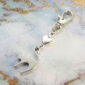 アンティークシルバー(銀古美色)で統一した、跳ね猫シルエットとハートを組み合わせた大人可愛いチャームに仕上げています