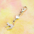 アンティークシルバー(銀古美色)の跳ね猫とハートの大人可愛いファスナーチャーム キーホルダー マスクチャーム