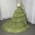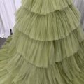 人気上昇!カラードレス グリーン 取り外しオフショルダー 柔らかく重ねたチュールスカート 花嫁