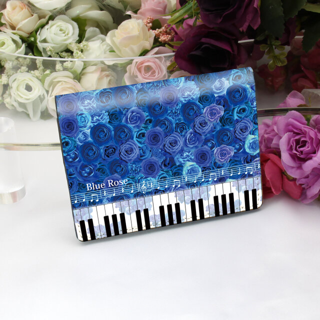 カードケース パスケース ICカード入れ 定期入れ 花 ブルーローズ 花柄 薔薇 ピアノ 鍵盤 音楽 音符