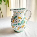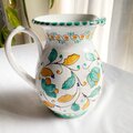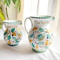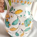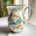 マヨリカ焼きの伝統色で描いた草花模様のどっしりした存在感のある水差し。