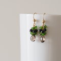 クロムダイオプサイドは濃いグリーンカラーで、シャープなカットが光を受けてキラキラと輝き、耳元にアクセントを加えてくれます。