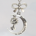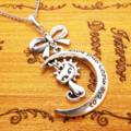 チェーンと三日月の合間に優しい曲線の大きめリボンをつないでオシャレ感をアップさせています