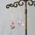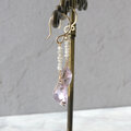 ボリビア産ファンシーシェイプファセットカットの宝石質アメトリンを使ったピアスです。アメジスト(紫水晶)とシトリン(黄水晶)が混ざりあったバイカラーの水晶で、表面はぷっくりとアーチのある形になっており、チェッカーカットが施されていて輝きがとてもきれいです。 裏面は尖ったファセットカット。不定形なフリーフォーム形状でとてもナチュラルな印象です。