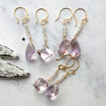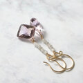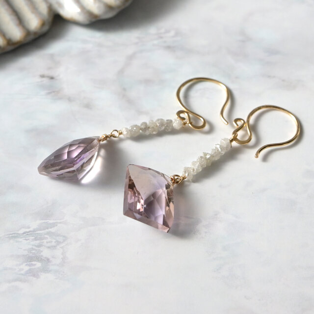 こちらはトップに原石ダイヤを加えてきらめきをプラスしたデザインです。アメトリンはサイズや印象の合う石をセットにしてピアスに仕立てています。がんばったご自身へのご褒美に、大切な方へのギフトにもどうぞ。