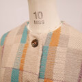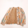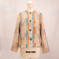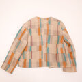 ベージュ系の色を基調とし、3色のブロックがアクセントになり一枚で主役になるジャケットです。