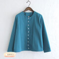 品よく羽織れる大人の一枚✦ 東炊きコットンツイル ノーカラージャケット(ターコイズ)CO13✦セットアップ可