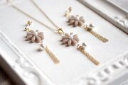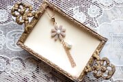 穏やかで落ち着いたブラウンのレジンのお花に、コットンパール一粒とフリンジを添えました。