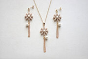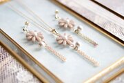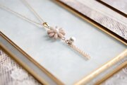 中心の花芯とコットンパールの光沢のある輝きが上品なペンダント。