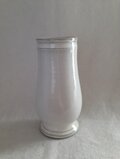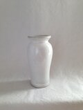 柔らかな雰囲気の乳白色の釉薬を使用した脚付きの花瓶です。