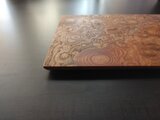 こちらの欅プレートには全体に玉杢が現れ、一般の欅材よりも赤身が強くとても美しいく上品な印象のプレートとなっております。