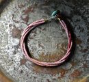 3色アンティークピンクマサイ、金赤ホワイトハーツの4連ブレス(ターコイズ留め金)