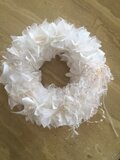 乳白色だったり、ピンク色を帯びていたり、でも、あくまでも雪をイメージした白いリース。