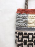 かぎ針編みのモザイク模様と、棒針編みのアラン模様を