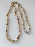神秘的なフォッシルコーラルの存在感のあるロングネックレスです。