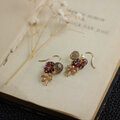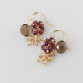 ブラウンのスモーキークォーツを主役に、透明感のあるロードライトガーネット、優しく光を放つパール、そして繊細に輝く天然ジルコンを組み合わせたピアスです。