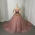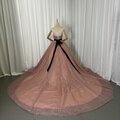 豪華!カラードレス ピンク ベアトップ サッシュベルト シークインチュール ロングトレーン 花嫁 前撮り