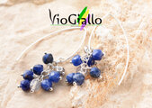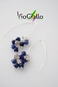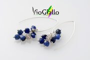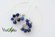 深い青色のソーダライトと柔らかでグレーのくすみカラーのグレーオニキス、アクセントに風合いのある可愛らしいカレンシルバーをスタイリッシュなVシェイプピアスに贅沢に繋ぎました。