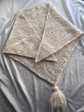 北海道置戸町 田中牧場様のテクセル羊の羊毛を紡いで編んだ三角形のショールです。