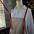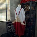 リネン×レッドの切替デザインエプロンが出来上がりました。