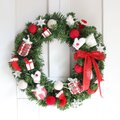 赤と白のあったかリース ― ぬくもりを感じるナチュラルデザイン ― クリスマスリース R&yCH157