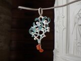 オレンジ色のカーネリアンが可愛らしく揺れるトップです