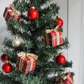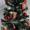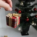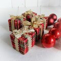 赤×ゴールドのタータンチェック柄プレゼントボックスは、ツリーに吊るすだけで一気にクリスマスムードを高めてくれる存在感があります。