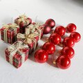 華やぐ赤いタータンチェックのギフトボックスとガラスボールのオーナメントセット(赤×ゴールド)R&yCH170-2