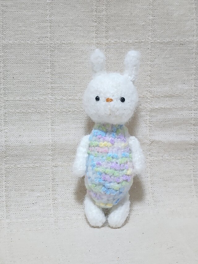 うさぎさんのボディに5色混ざった毛糸を使いました。