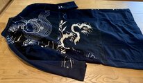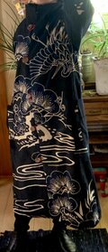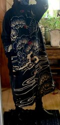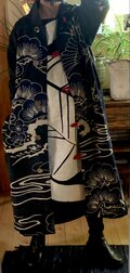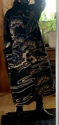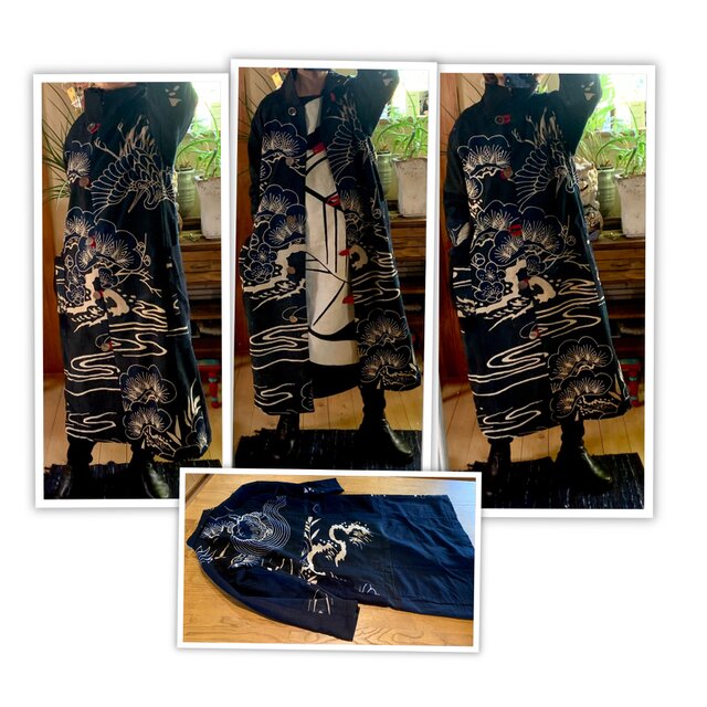 古布を使って鶴亀松竹梅柄のコートを作りました。