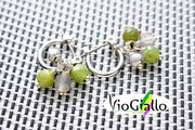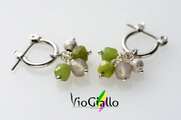可愛らしいキューブカットの深みのある落ち着いた抹茶色のネフライトと柔らかなくすみカラーのグレーオニキス、キラキラ輝くメタルビーズをフープピアスに合わせました。