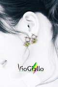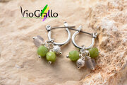 耳元でフープに下がる石たちが素敵で、キラキラ輝くメタルビーズがアクセントになっています。