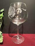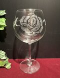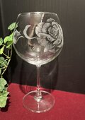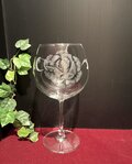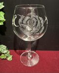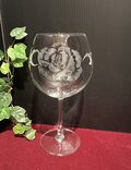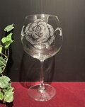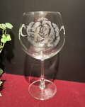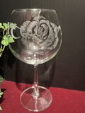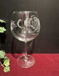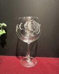 存在感のあるバルーンタイプのグラスに薔薇の花を手彫りしました。グラマラスなフォルムとデザインが、華やかで、優雅な時間を演出してくれます。