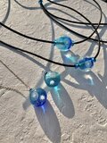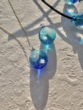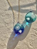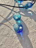 美しい沖縄の海の様な青のグラデーションガラスで作ったシマエナガと雪の結晶ネックレスです。