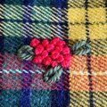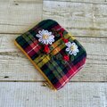 大人かわいい手刺繍お花×タータンチェックのフラットポーチ(ポケットティッシュサイズ) ウール 小物入れ ギフト クリスマス