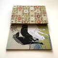 表面は名画を織り出す額絵織物を使用しております。裏面は桐生金襴織物を使用しています。比較的丈夫で色褪せし難い為、美しい織柄を末永くお楽しみ頂けます。織物(繊維)は摩擦や引っかけに繊細な素材です。御朱印帳袋等をご活用頂き、本作品をより美しい状態で保たれる事をお薦めいたします。