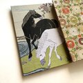 『梅樹下の馬』 北尾重政御朱印帳 美術名画御朱印帳 B6 大判サイズ 梅樹下の馬 北尾重政 馬 白地菊唐草 御朱印帳 桐生織物
