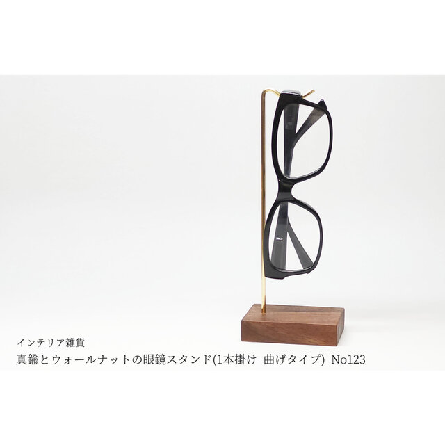 真鍮とウォールナットの眼鏡スタンド(1本掛け 曲げタイプ) No123