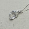 透明度が高く細かいフラクチャーが煌めくナチュラルトパーズの原石ポイント、唯一無二の瑞々しい鉱物の表情をお楽しみ下さい*11月の誕生石で「誠実」「友情」「希望」を象徴する石とされ持つ者に良い影響をもたらすといわれます*金具はアンティーク調のマット仕上げ。通常、黒化遅延処理を施しますが銀そのものの変化をお好みの場合は処理不要とお申し付けください*黒化防止ロジウムコーティングご希望の場合はチェーンとともに承ります(最終画像下段色味参照・別途1500円)