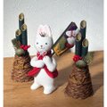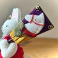 正絹【福福うさぎ (左肩抱え赤服) 羽子板セット】縮緬人形 正月飾り 干支の置物 春節 干支 午 ちりめん細工