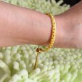 見事な黄色の銀杏の木々の下をお散歩しているイメージで作った、平たい組紐。これをゴールドのスライドボールで着脱がラクチンなブレスレットにしてみました。