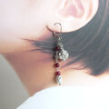 一点ものSV925ピアス2way★ガーネットとパールとパヴェ