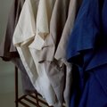 ナチュラルな生成りのほか、藍やユーカリで染めたグレーなど、草木染めの色味もきれいで肌になじみます。