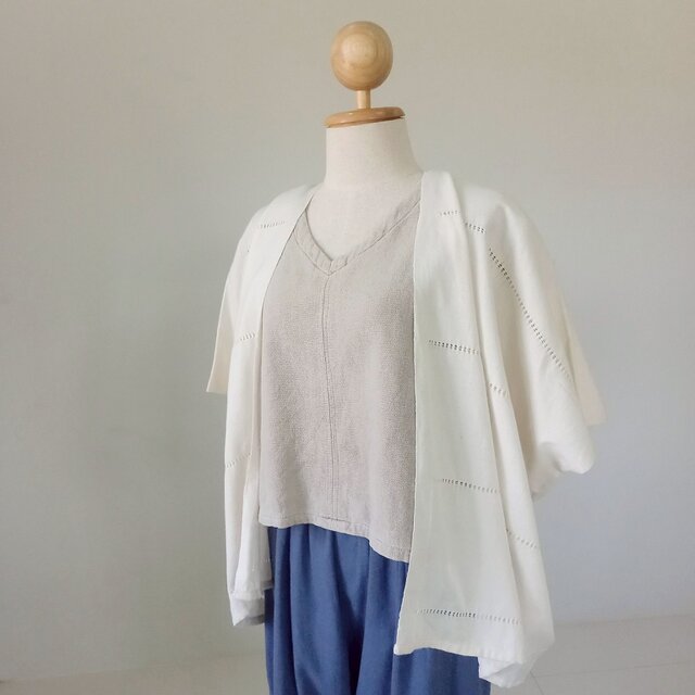 カレン族の貫頭衣をベースにしたデザインで、後ろ側がVネックになっており、後ろ姿もすっきり美しいですよ。